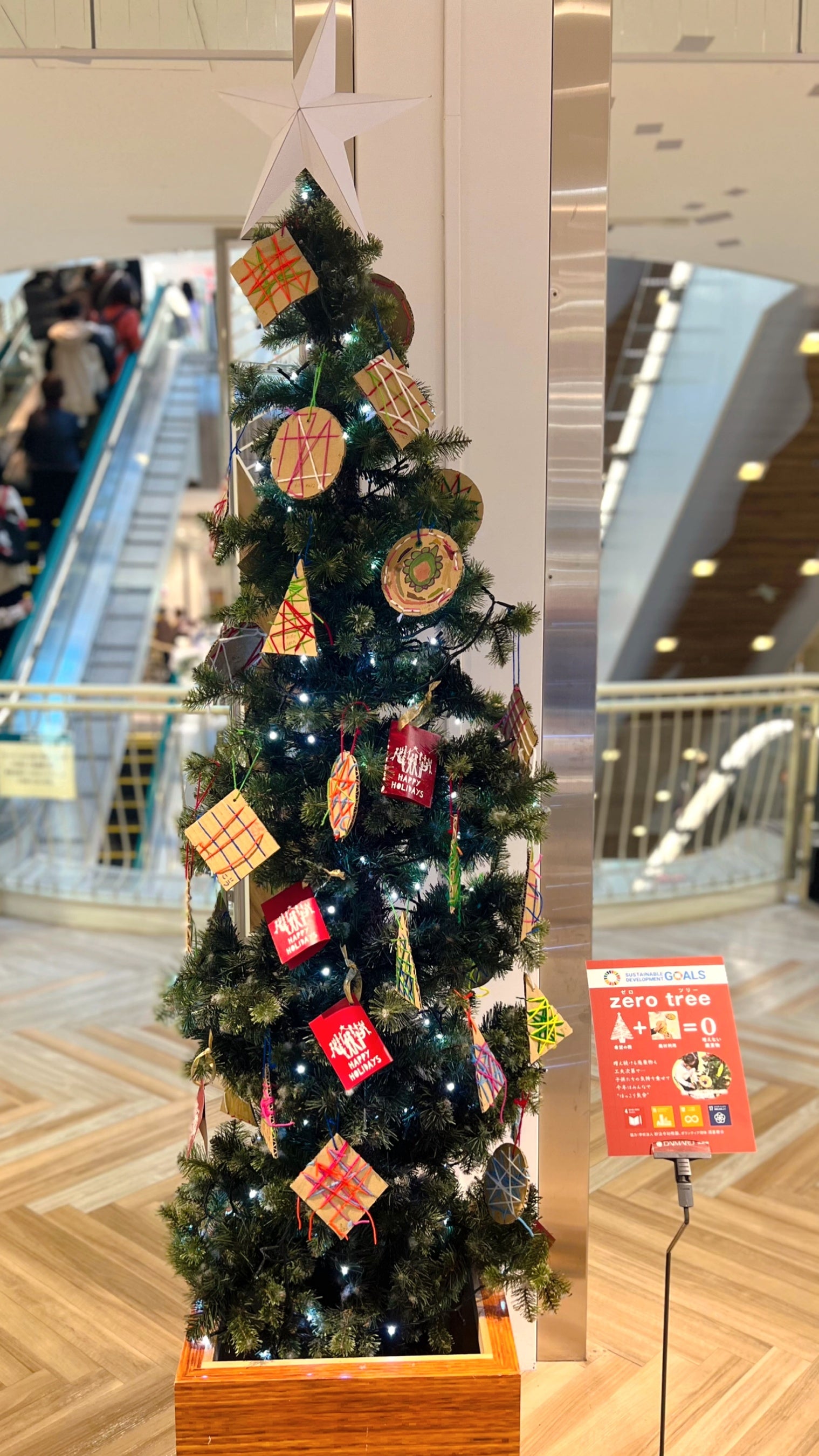 須磨店の目指す地域共生のビジョンのもと、本年のホリデーシーズンは、地域の皆さまが楽しみながら来館され、家族の思い出にもなる企画を実施しました。 今回は初めて区内幼稚園と連携し、廃材となる段ボールをツリーのオーナメントにアップサイクル。子ども達がカラフルな糸を巻きつけ、市販品では味わえない心温まるオーナメントを作りました。飾りつけも子ども達が楽しんで行い、2023年、年の瀬ならではのあたたかい思いが詰まったツリーが完成しました。