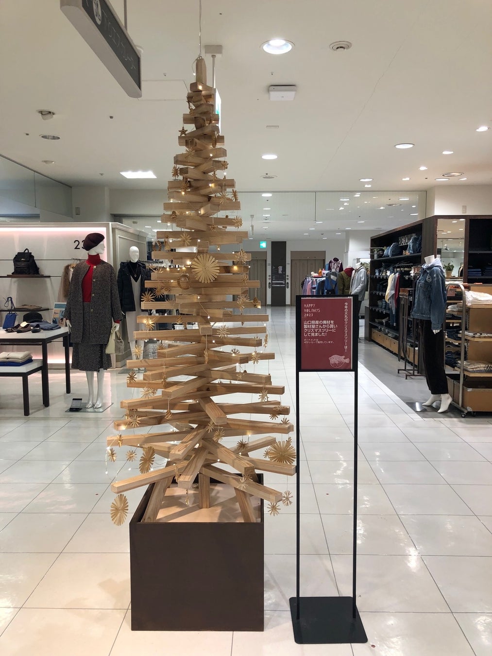大丸下関店 使えなくなった山口県産の建築用材木をツリー&リースに!