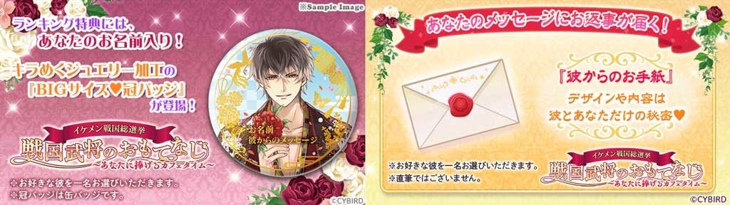 株式会社サイバード(本社:東京都渋谷区、代表取締役社長 兼 CEO 本島 匡、以下「サイバード」)の、全世界でのシリーズ累計会員数3,500万人を誇る女性向け恋愛ゲーム「イケメンシリーズ」の人気タイトル『イケメン戦国◆時をかける恋』は、彼らの順位が決定する、年に一度の大イベント「イケメン戦国総選挙 戦国武将のおもてなし~あなたに捧げるカフェタイム~」を、2022年6月18日(土)よりゲーム内で開催します。