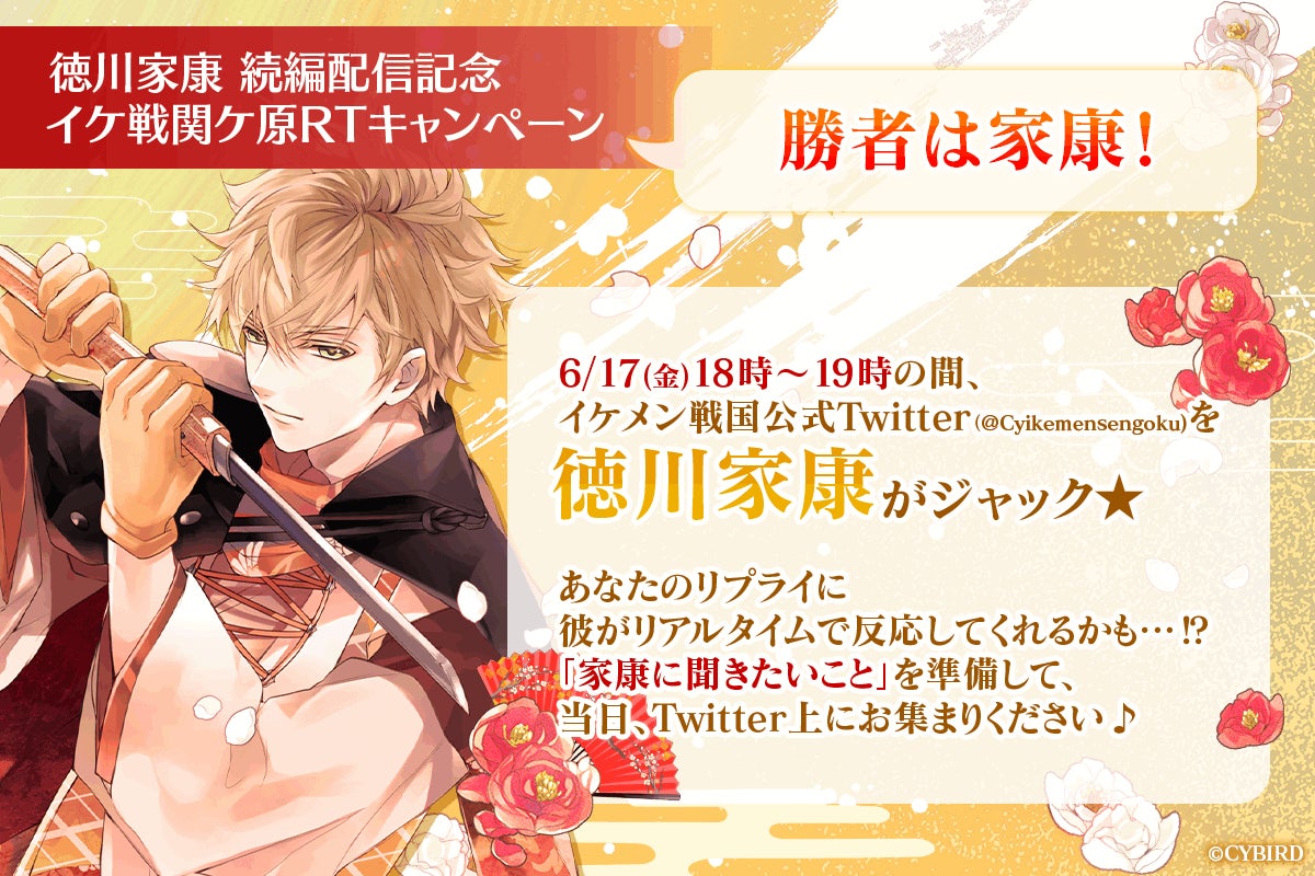 続編配信記念キャンペーンの一つとして、「徳川家康(CV:増田 俊樹)」が2022年6月17日(金)18~19時、『イケメン戦国◆時をかける恋』公式Twitterをジャックします。リプライで質問すると、彼がリアルタイムで反応してくれるかも…?