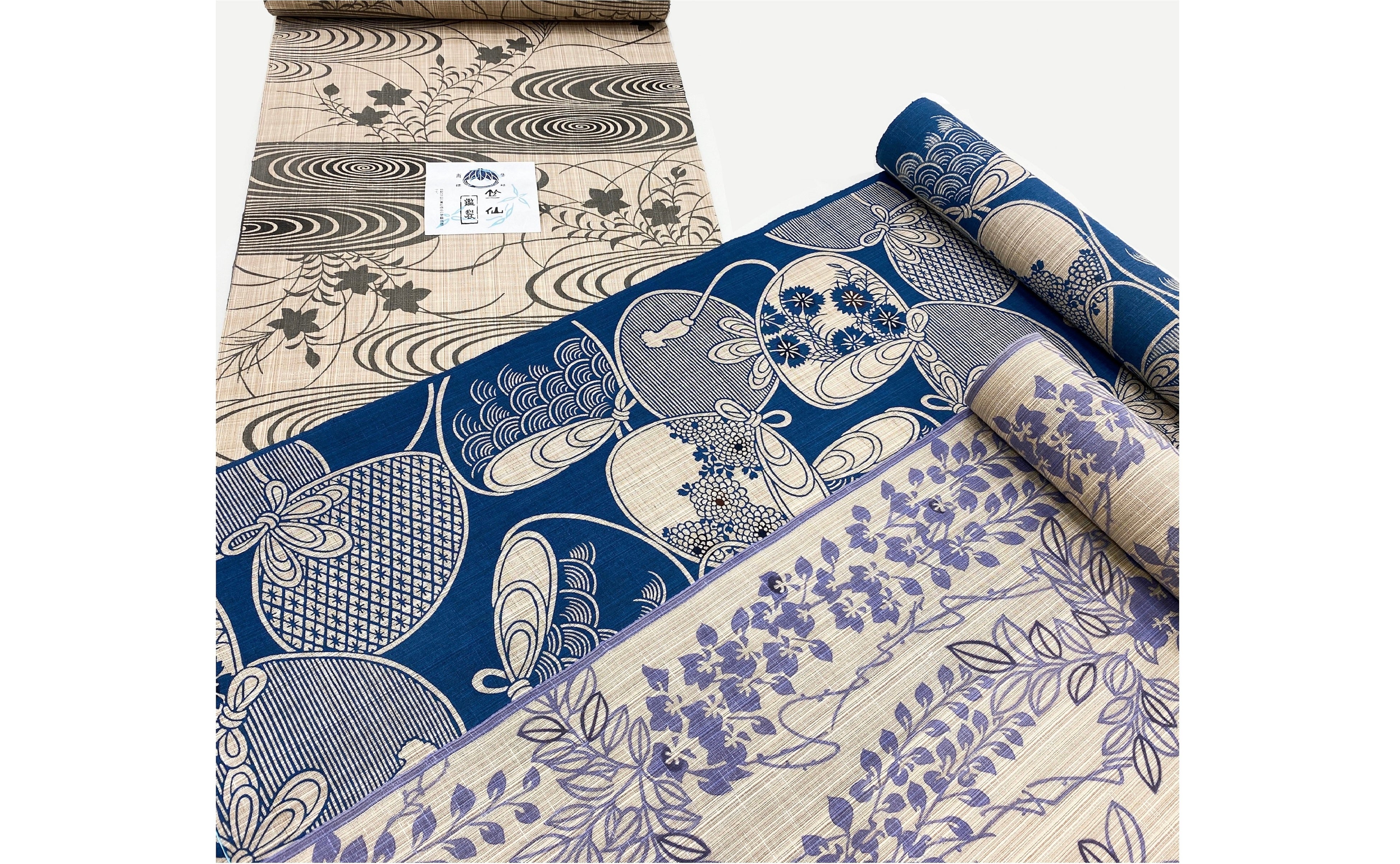 久しぶりの外出やイベントを楽しむ夏の装いとしてのニーズが高く、半襟や足袋をあわせて、きもの感覚で着用できるゆかたが好調。特に綿紅梅(めんこうばい)や綿絽(めんろ)奥州小紋(おうしゅうこもん)などの高級ゆかた地を反物から誂えるゆかたが人気です。