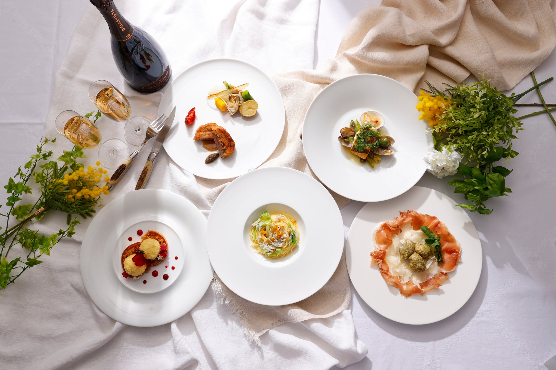 真っ白なお皿を彩る華やかなメニューの数々が、“春”の訪れを感じさせる季節限定のメニューです。