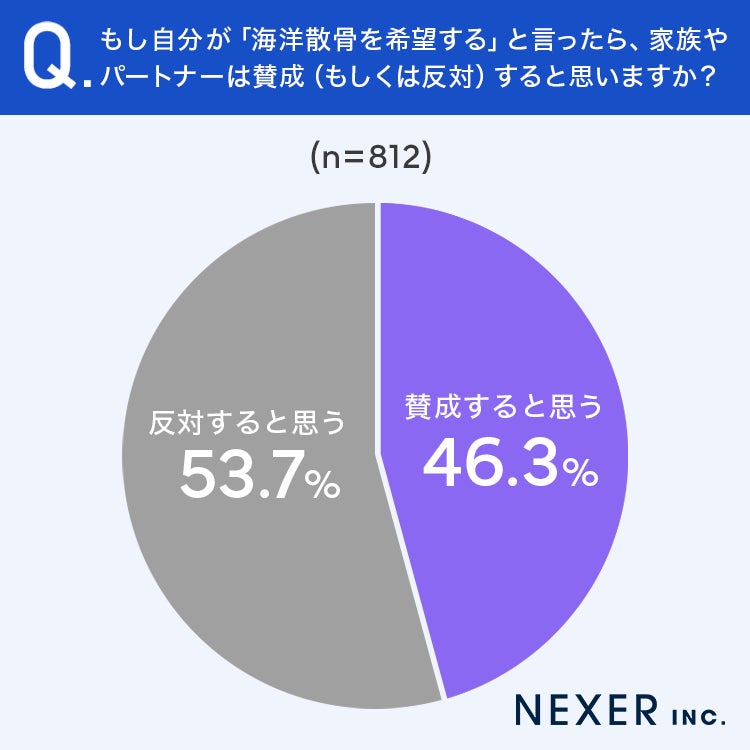 続いて、もし自分が「海洋散骨を希望する」と言ったら、家族やパートナーはどう反応すると思うかを聞いてみました。