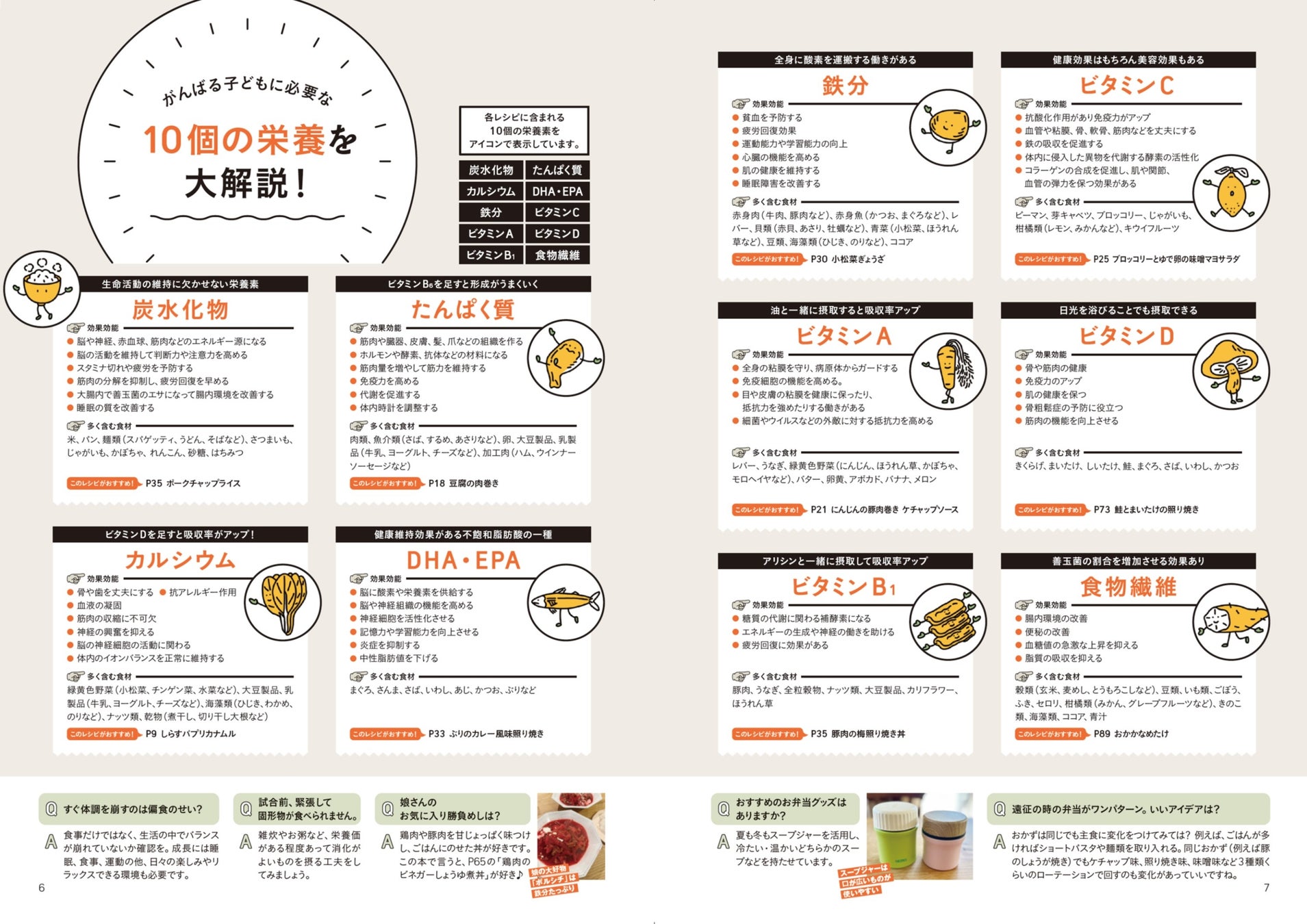この本では、お子さんがスポーツする上で抱える悩みや理想に対し、どんな食事をどんなタイミングで摂るとよいかと、さらにそれをよく理解して実践することは、サポートする人、サポートを受ける人のどちらにも必要だということを伝えたいと思います。量よりも困った時に応用ができるレパートリー、食材の組み合わせ、食事や補食のタイミングの必要性をなるべく手に入りやすい食材、調味料、調理の仕方でお伝えしていきます。苦手なものを無理強いしなくても構いませんが、作る側も食べる側もチャレンジをするきっかけになったら嬉しいです。