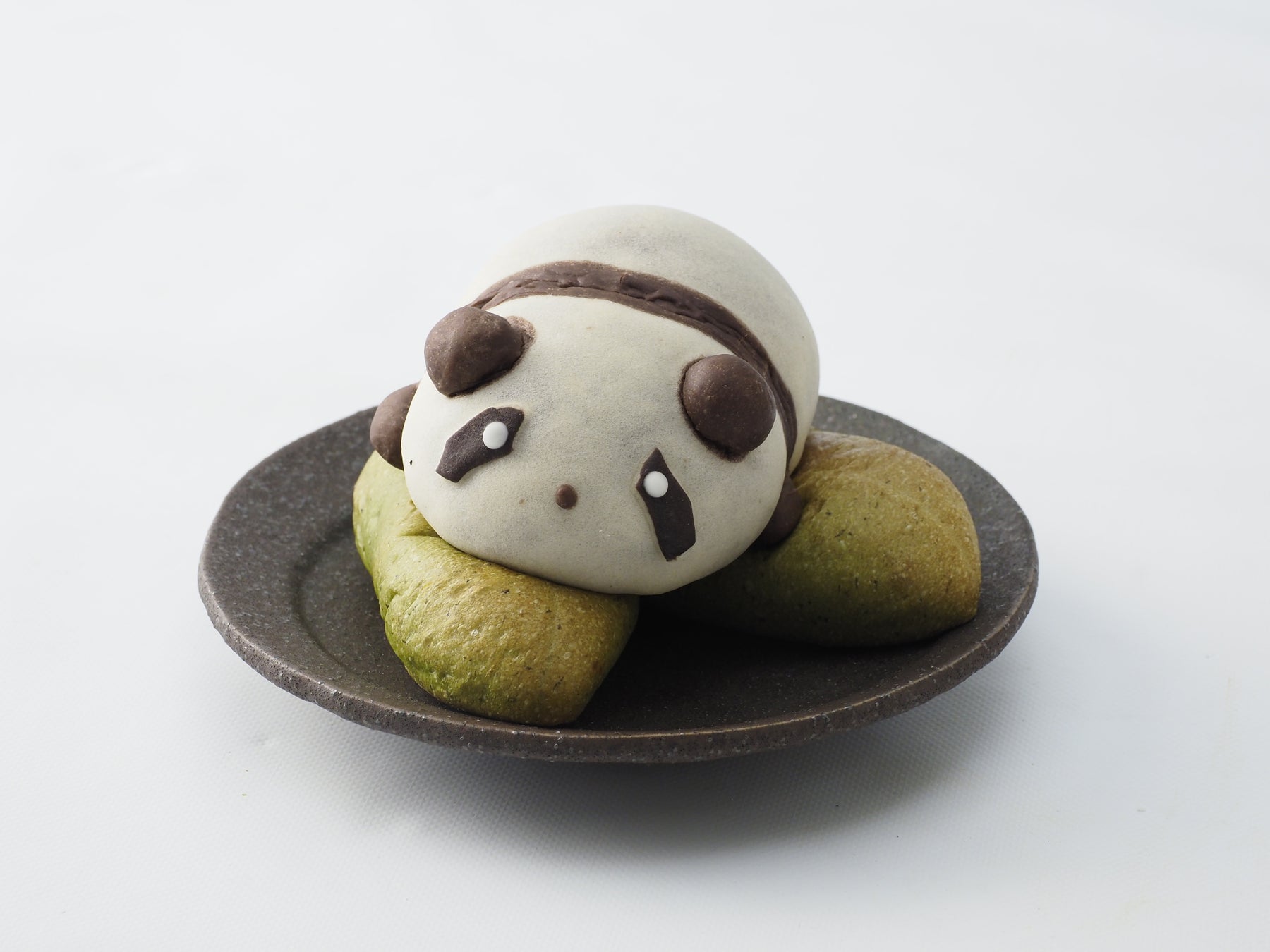 よもぎあんぱん(笹)の上にチョコクリームのパンダパンをのせました。
