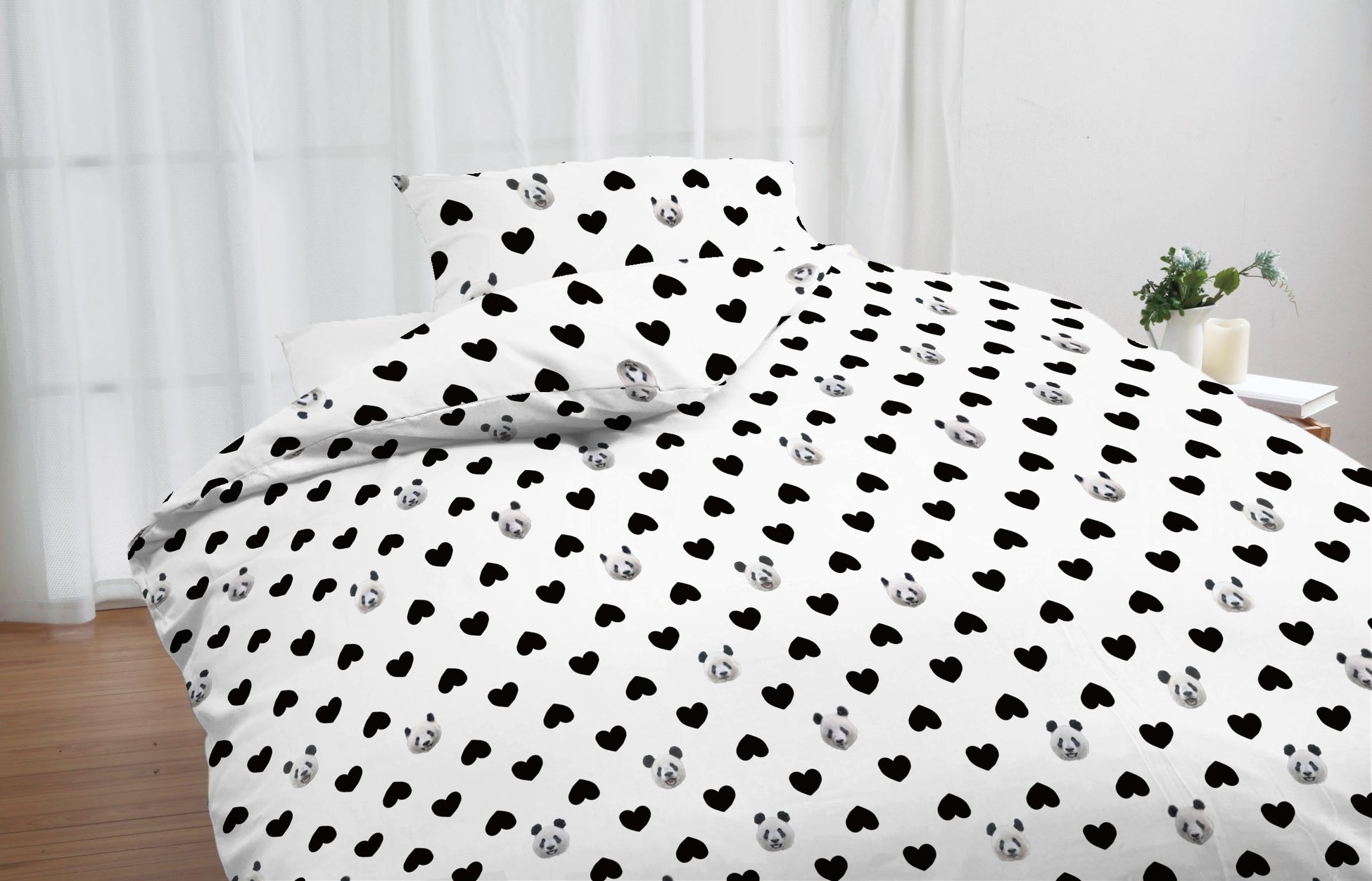 〈松坂屋上野店×ロマンス小杉〉パンダカバーリング2点セット(掛け布団カバー+枕カバー)(カラー:ホワイト、ブルー、ピンク、アイボリー)各 16,500円