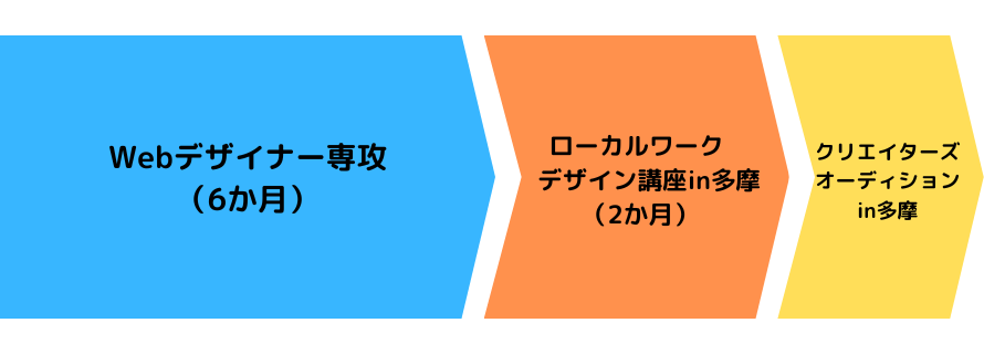 Webデザイン、グラフィックデザイン等の制作未経験者の方には、デジタルハリウッドSTUDIOの人気講座「専科Webデザイナー専攻」6ヶ月のコースに『ローカルワークデザイン講座in多摩』の2か月がセットになった『Webデザイナー専攻 多摩パック 7月生』としての受講も可能です。