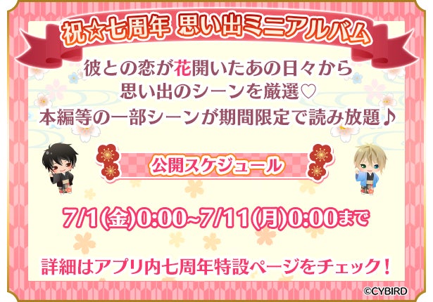 株式会社サイバード(本社:東京都渋谷区、代表取締役社長 兼 CEO 本島 匡、以下「サイバード」)の、全世界でのシリーズ累計会員数3,500万人を誇る女性向け恋愛ゲーム「イケメンシリーズ」の人気タイトル『イケメン戦国◆時をかける恋』は、2022年6月22日(水)にリリース七周年を迎えました。