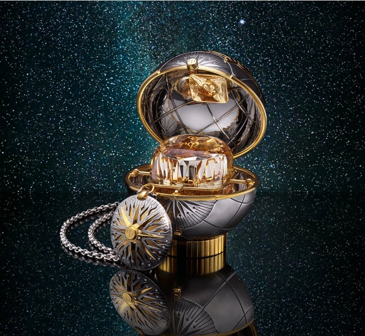 ◆天空から地上を照らす輝きの源である太陽、おごそかな光をたたえる月から発想を得たジュエリーに、ブランドを象徴するアイテム「ラ・クレーム」と、リップスティック「ルージュアレーブル」をそれぞれ収めた数量限定品。