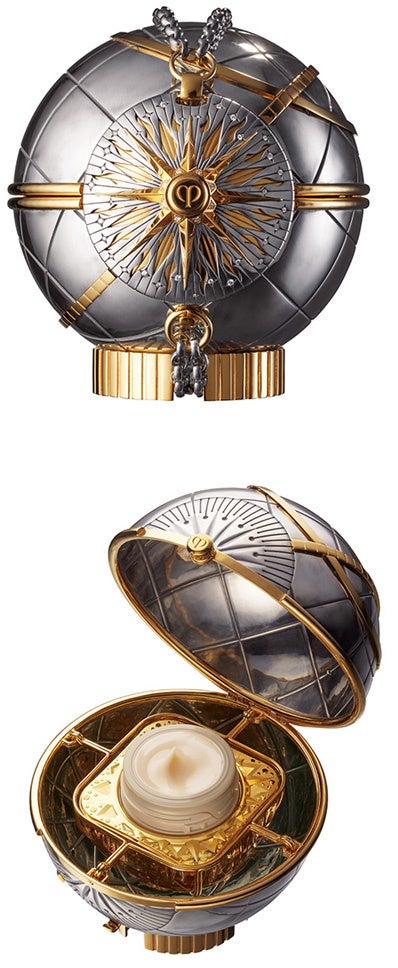 時間と手間を惜しまずに作り出されたこのクリームは、肌をこの上なくなめらかにし若々しい輝きへと導きます。クレ・ド・ポー ボーテは、至高の美しさを手にするために欠かせないのは、輝きを解き放つことと提案しており、エリー・トップは「ラ・クレームを厳重に守り抜かれた宝物に見立て、その秘密を解き明かすような仕掛けを考えた」と語ります。ソレイユ ジョアイエを飾る「ル パンダンティフ ソレイユ(太陽のペンダント)」は、輝きを解き放つ「秘密の鍵」を意味するもの。このペンダントでラ・ボワットアビジュプラネットの鍵を開くと、24金ゴールドでコーティングされたラ・クレームが姿を現します。ジュエリーとしても使えるこのペンダントには、クレ・ド・ポー ボーテの40年の歴史にちなみ、40個のダイヤモンドがちりばめられています。ラ・ボワットアビジュプラネットからラ・クレームを取り出した後は、ジュエリーボックスとしてさまざまな用途にお使いいただけます。