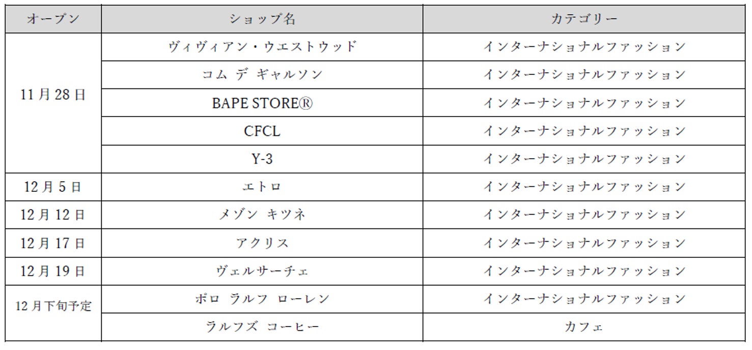 6階フロアは話題の最旬ファッション16ショップで構成されます。第1弾の11月~12月には11のショップとカフェがオープン。「コム デ ギャルソン」「CFCL」など世界で高く支持される国内発モードファッションから、「エトロ」「アクリス」「ヴェルサーチェ」などタイムレスなデザインと卓越した品質で愛されるブランドや、「メゾン キツネ」「Y-3」「BAPE STOREⓇ」など独自の感性とコンセプトで魅力を放つブランドまで、お客さまに新しい感性との出会いをお届けします。