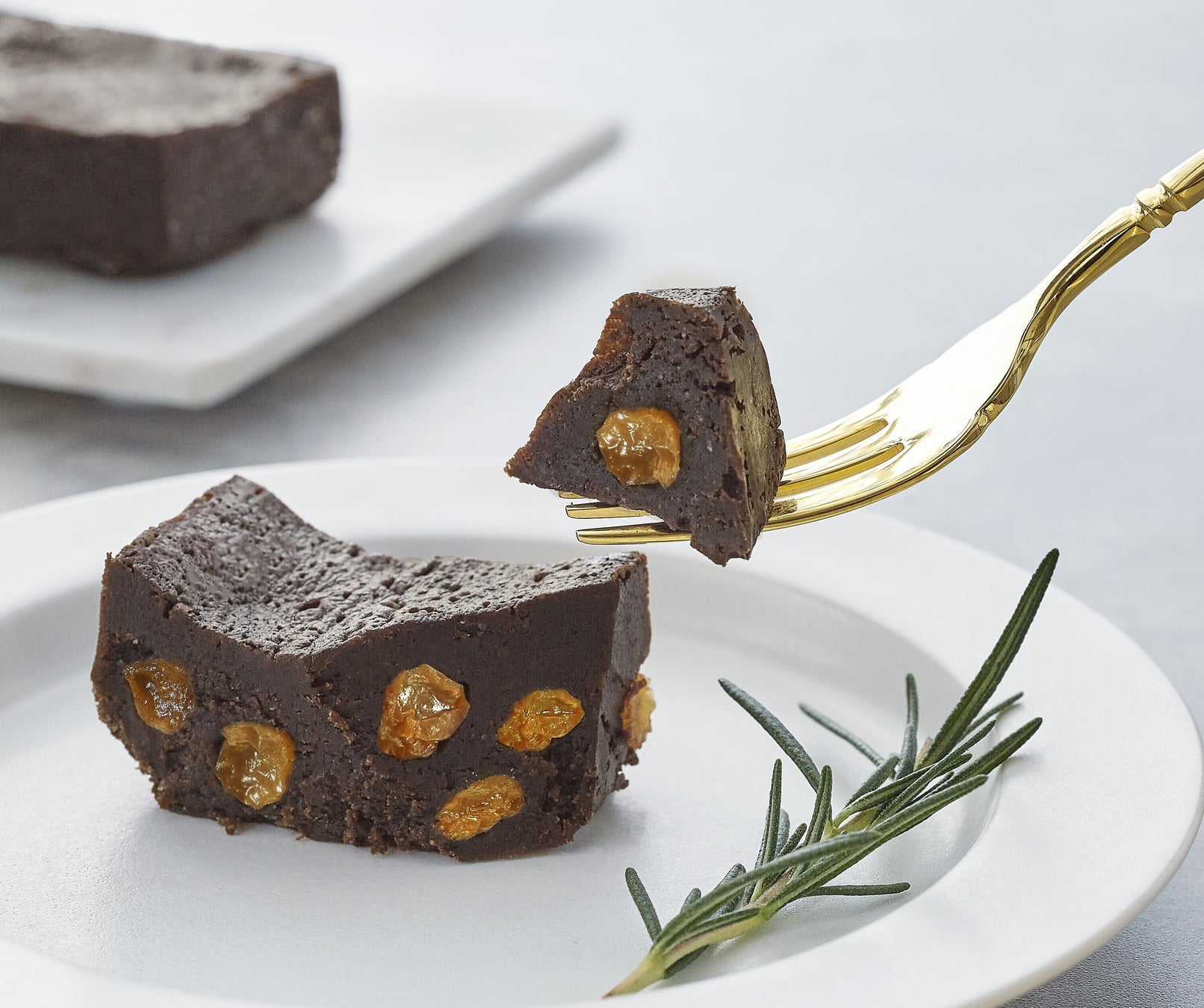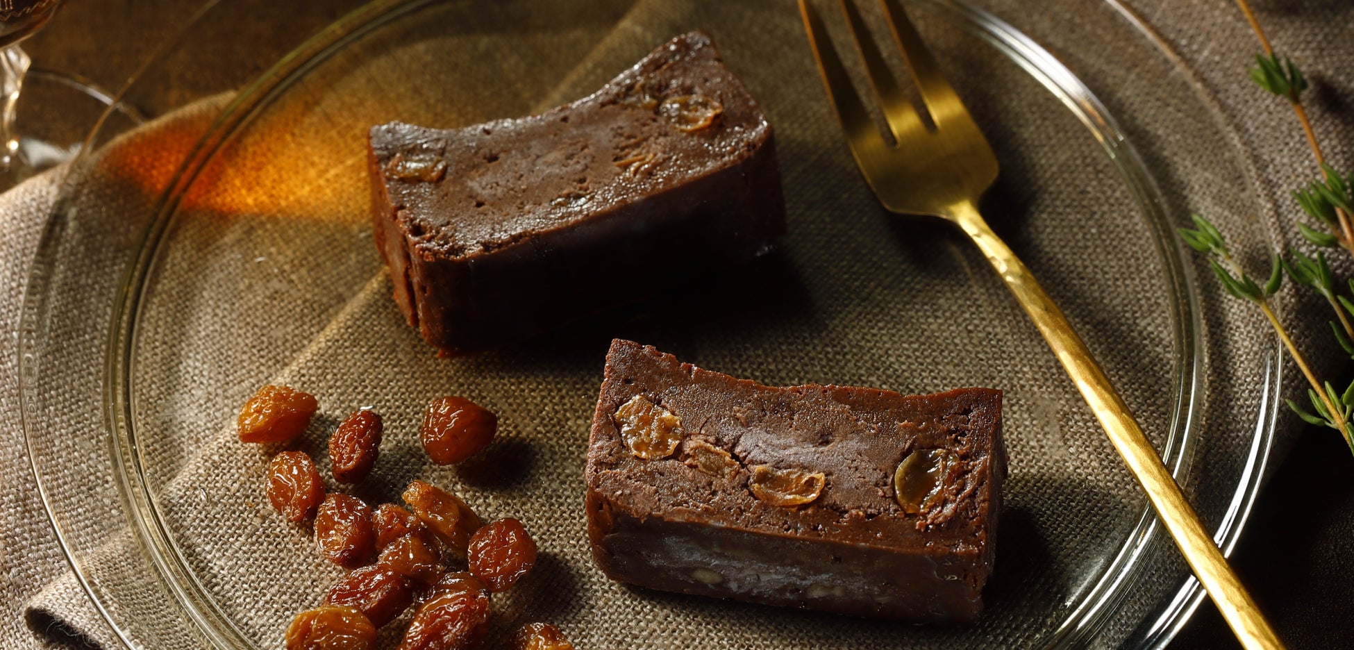 「ラミーテリーヌ」はビターチョコとミルクチョコの絶妙なバランスで仕上げた濃厚な味わいで、何度も試作を行い、やっとたどり着いたレシピです。特徴であるみずみずしいラムレーズンは、ラム酒に長時間つけ込むことで芳醇な味わいに仕上げています。この芳醇なラムレーズンをたっぷり使用し、じっくりと時間をかけて生地を焼き上げることで、しっとり濃厚な美味しさをお楽しみいただけます。