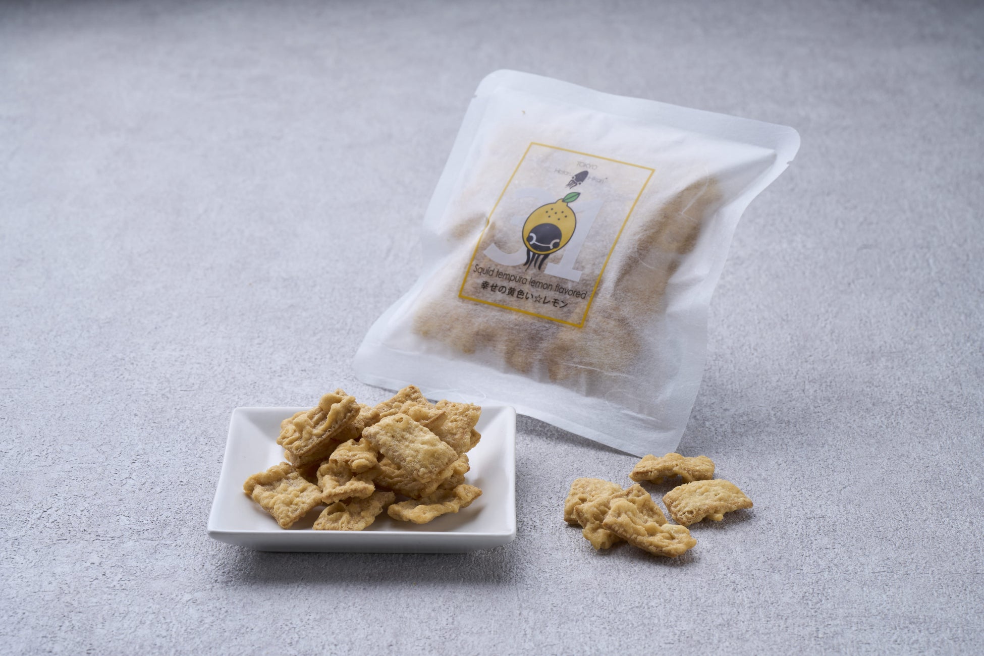 サクサクのイカ天スナックに瀬戸内のレモンフレーバーをふりかけた風味豊かな商品です。