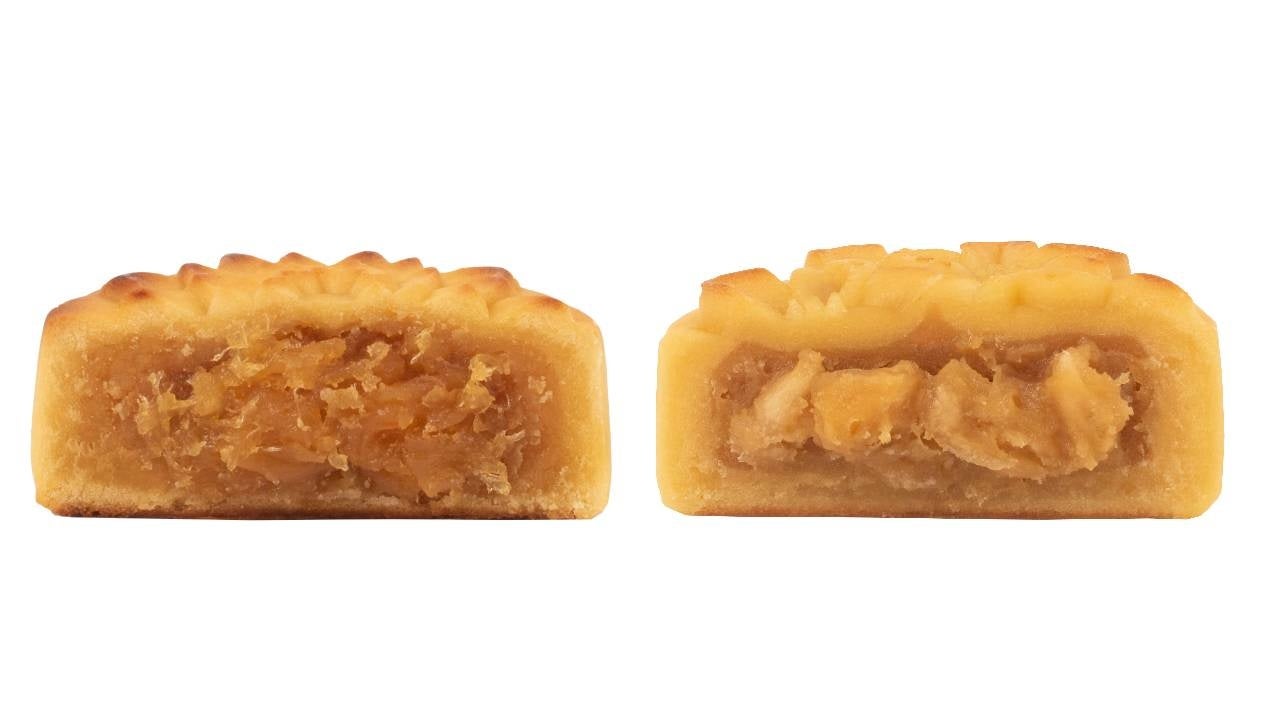 ※レギュラーサイズ 直径約7cmx高さ3.5cmの伝統的な蓮の実あんと塩漬け卵黄の月餅のご用意もあります。
