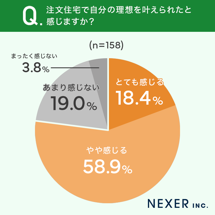 続いて、注文住宅で自分の理想を実現できたと感じているかを聞いてみました。