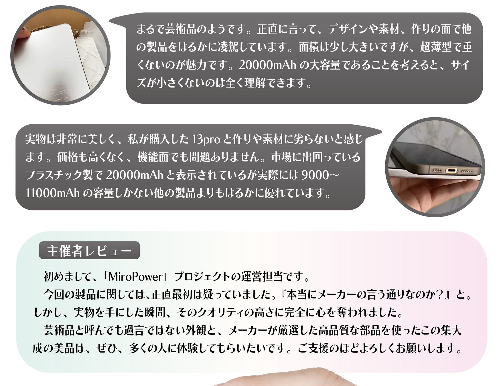 この度、「美」の流儀を貫くモバイルバッテリー「MiroPower」のクラウドファンディング【目標達成率4000%】を達成しました事をお知らせします。