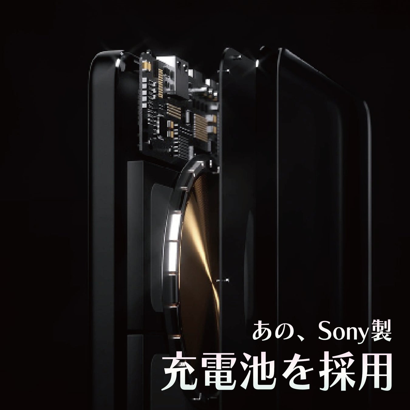 高性能なソニー製充電池を採用することで、従来の同出力のバッテリーより約32~34%薄い設計を実現しています。