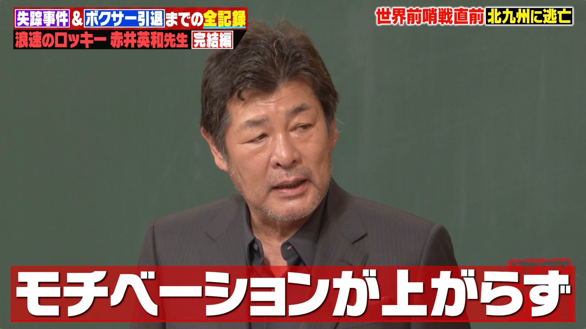 1983年には初の世界タイトルマッチに挑戦するも、7回TKO負けで初黒星。その後、赤井先生は「トレーニングをサボりだし、酒に溺れる日々」を過ごすようになったと打ち明けます。そして、再起をかけた世界前哨戦を目前に控え、赤井先生は突如失踪。「モチベーションが上がらず、金銭的な不満もあった。お金の流れが全然わからない、納得いかないところがあった」と、その背景を率直に明かした赤井先生。引退届を提出してそれが世間に注目されたら全部ぶちまけてやろうと思いがあったと振り返りました。