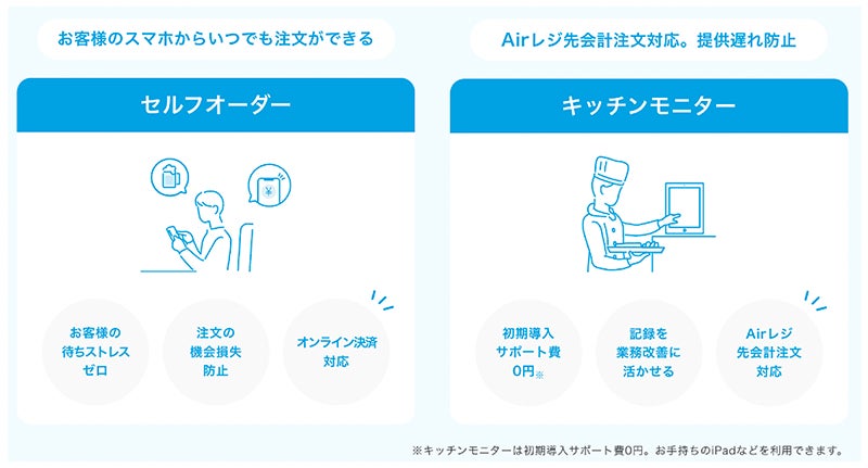 ■対象プラン:『Airレジ オーダー』セルフオーダーとキッチンモニター、またセルフオーダー決済機能の新規申し込み