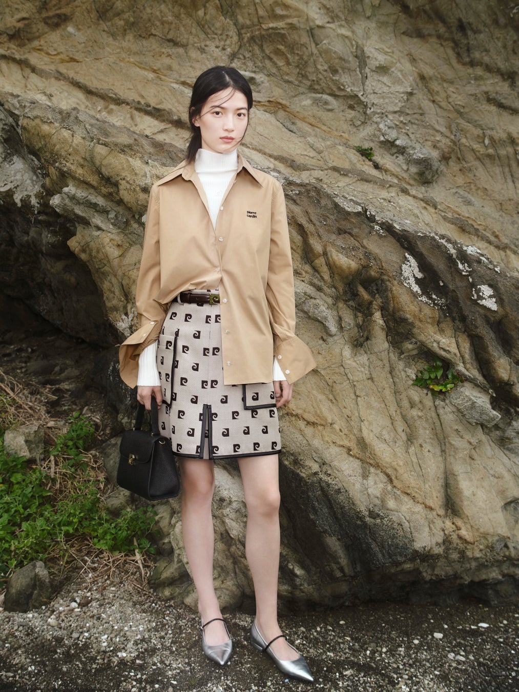 pierre cardinのロゴ刺繍が映える、シンプルでクリーンな印象のシャツ。