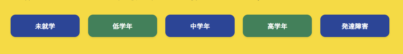 ドリルは、未就学から小学校高学年まで、さらに発達障害対応を含む、5つのクリックボタンから飛んで選べる作りになっています。