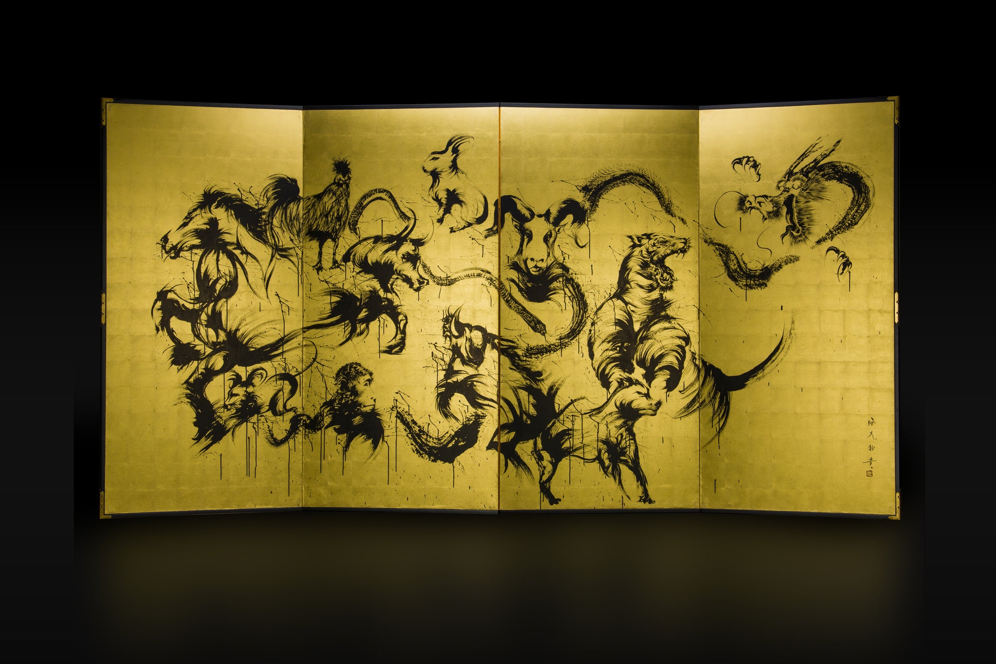 【特別展示】黄金の屏風「十二支」(西本祐貴作)高さ約170×幅380㎝