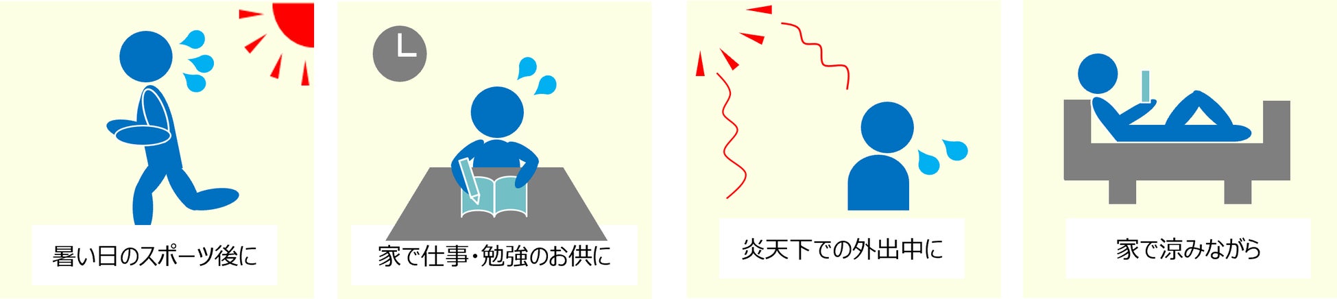 暑い季節の外出中から家で仕事や勉強を頑張りたいとき、いつでもどこでもリフレッシュ。ぜひお試しください。
