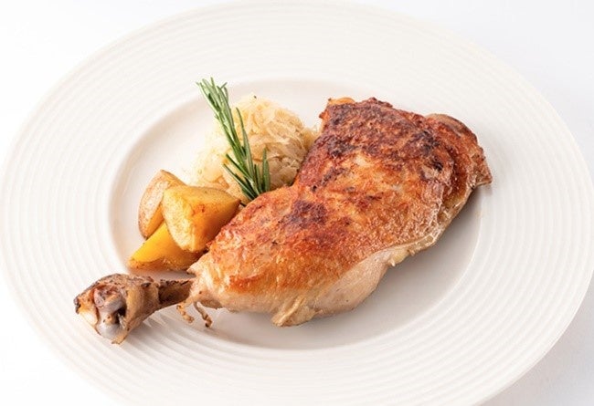 兵庫県産鶏モモ肉を、3時間の低温調理で柔らかくジューシーに仕上げ旨味を閉じ込めました。