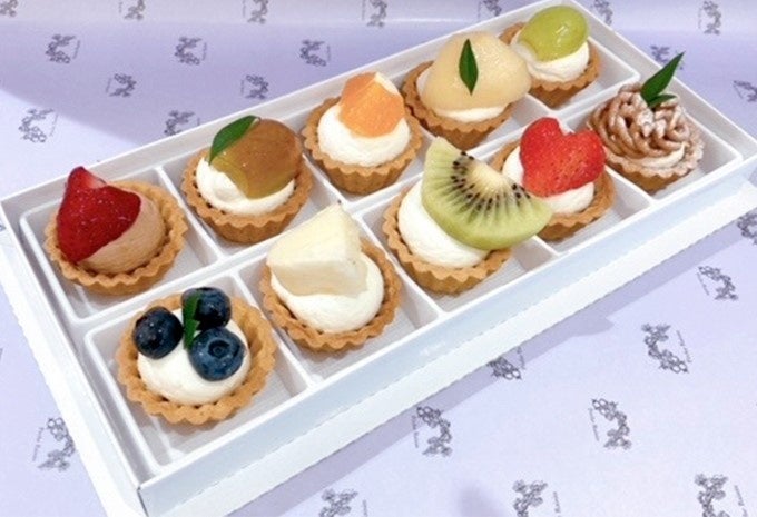 くだもの屋のプチタルトアソート。食べきりサイズのサクサクタルト生地に、甘さ控えめの生クリームとカスタードクリームを重ね季節のフルーツを飾りつけました♪10種のタルトをみんなでお楽しみください。