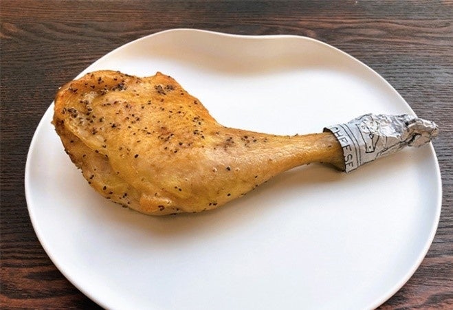 千葉県産の水郷赤鶏の骨付きもも肉を、クリスマス島の塩とブラックペッパーで味付けしたチキンです。