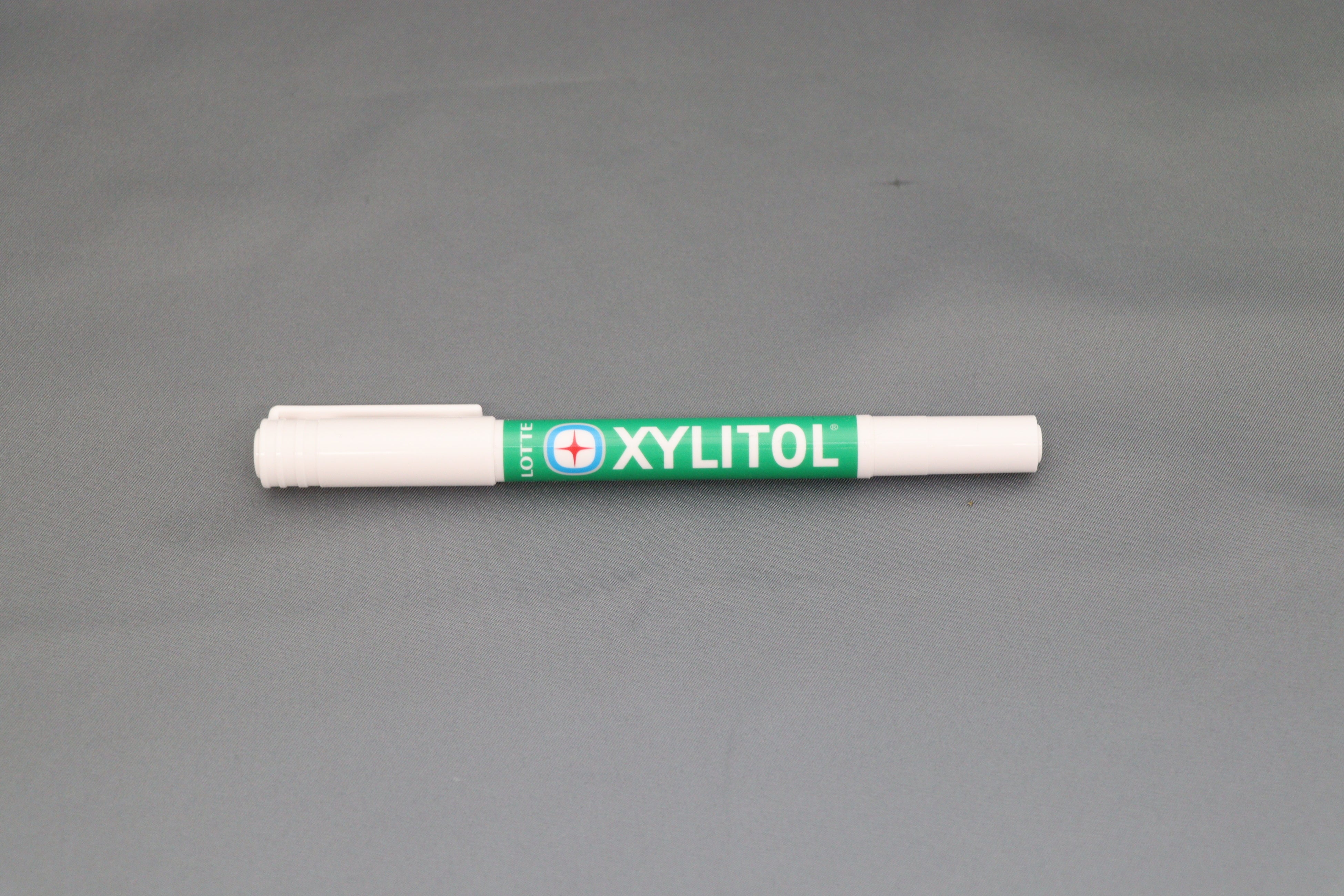 *本ボールペンマーカーの主要な5つのパーツ(本体軸、キャップ2種、先栓2種)にガムボトル(本実証実験で回収したガムボトル23%、生産工程での成形不良のガムボトル77%)からできたリサイクル樹脂を100%使用しています。