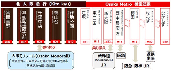 北大阪急行電鉄 全駅(箕面萱野・箕面船場阪大前・千里中央・桃山台・緑地公園)