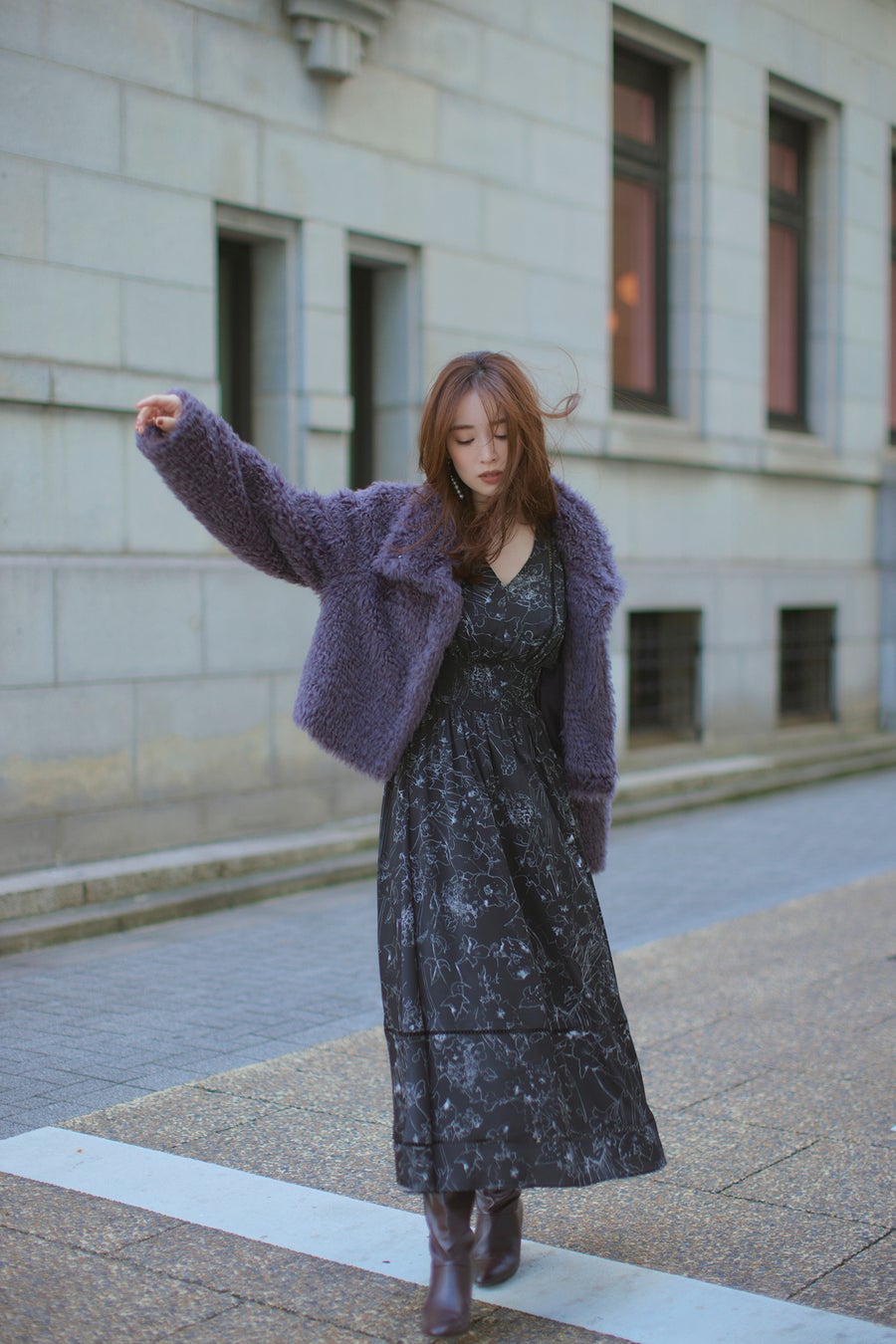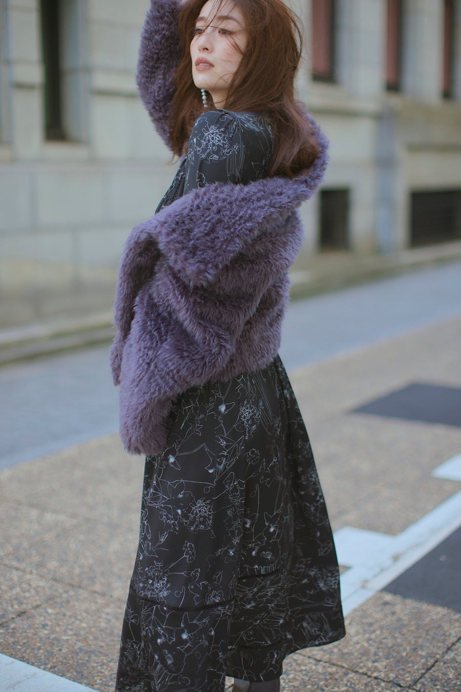 Jacket ¥31,900 / Dress ¥25,300 / Pierced earrings ¥ 8,250 / Shoes ¥24,200