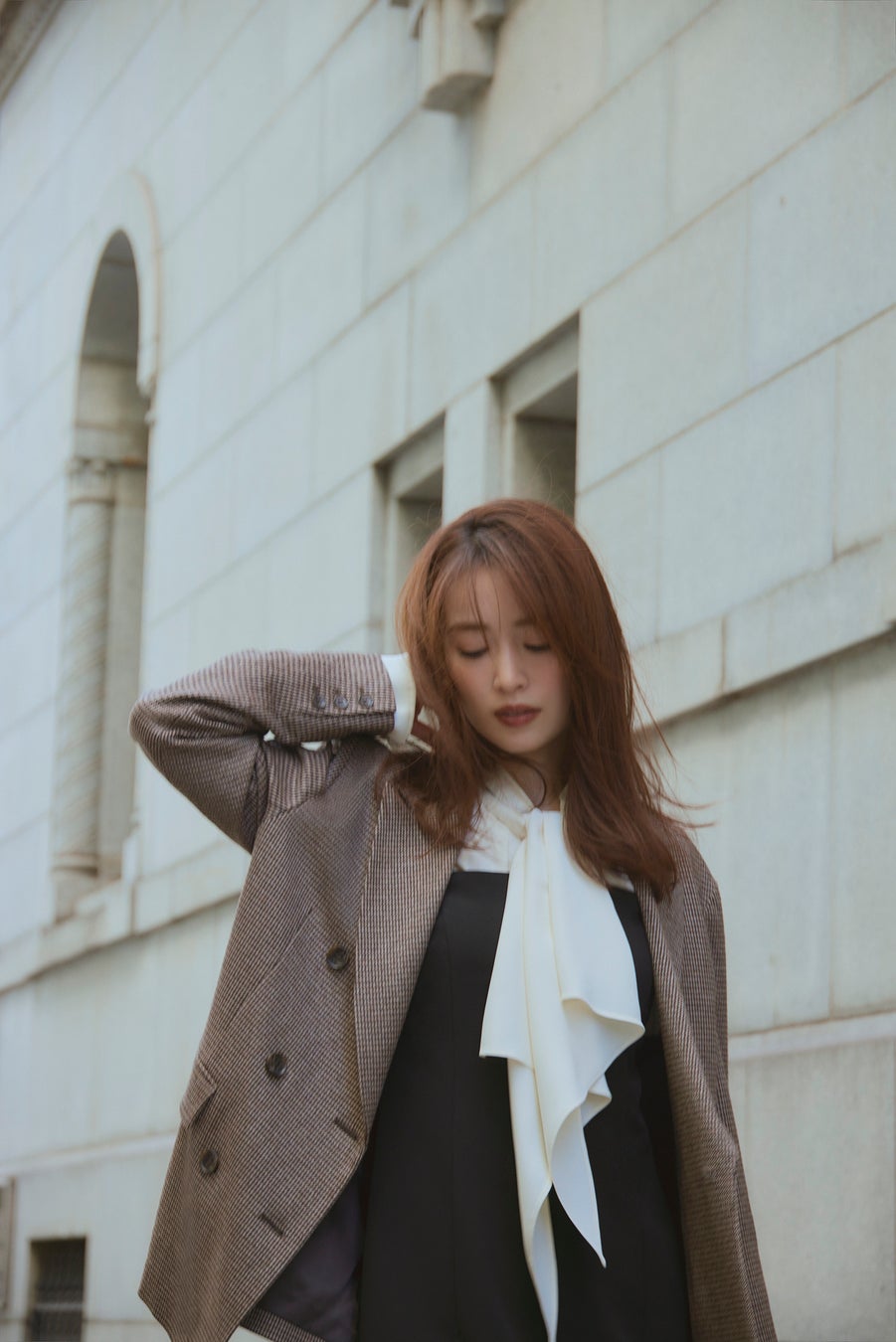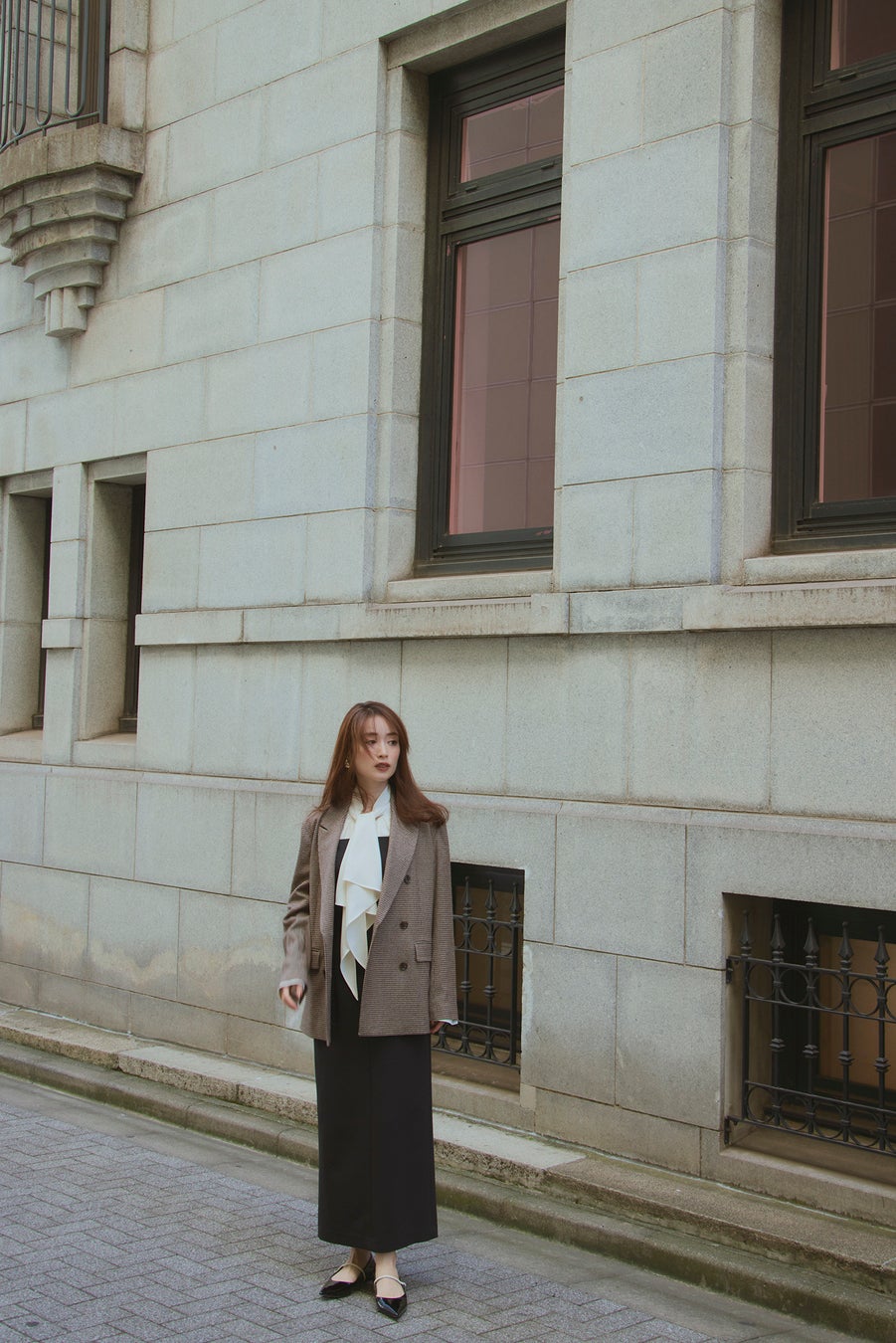 Jacket ¥35,200 / Blouse ¥18,920 / Dress ¥24,200 / Earrings ¥10,340 / Shoes ¥24,200