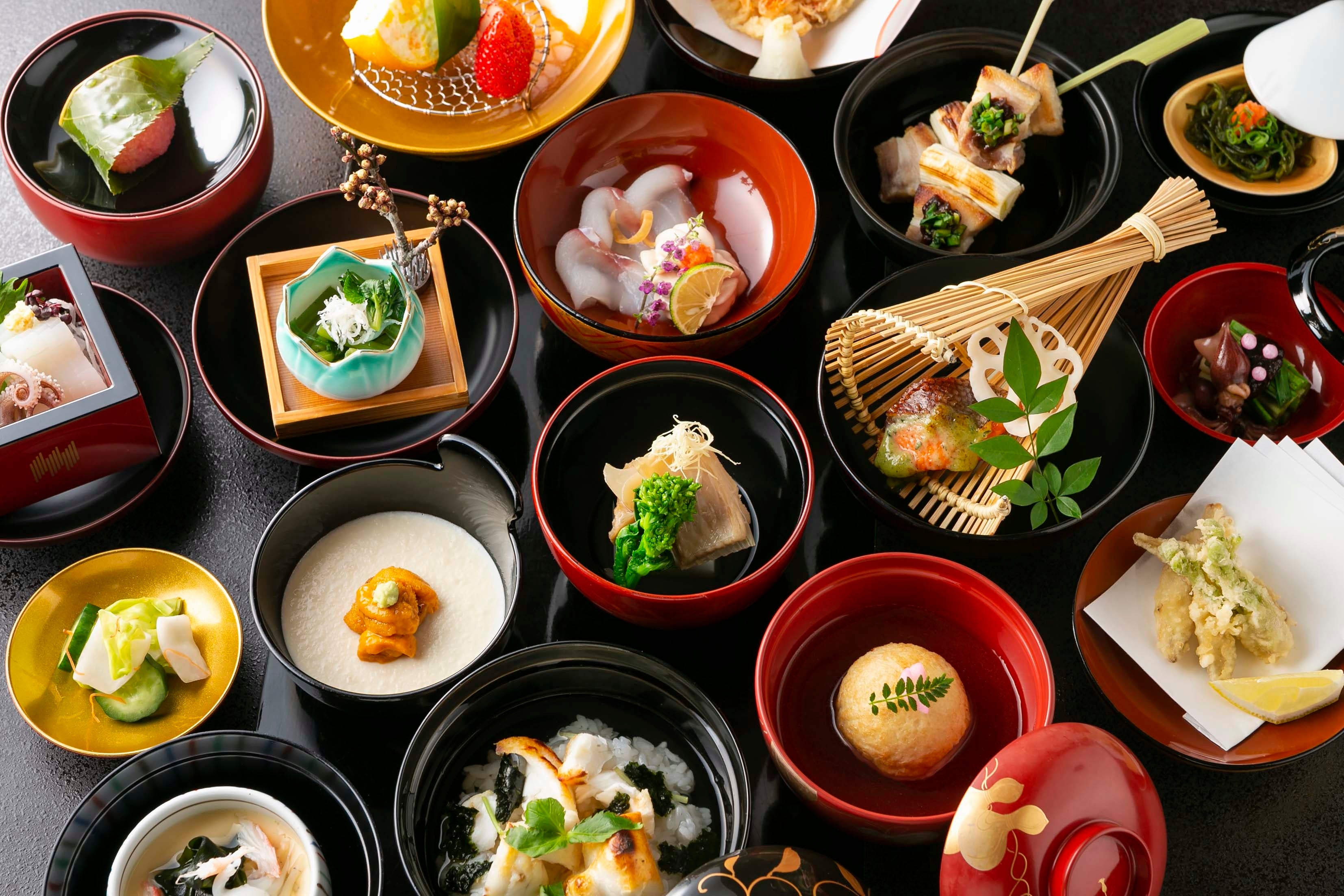 個性豊かな結の香のお酒に合わせて仕立てた、春の気配を感じる懐石料理。酒菜は、濃厚な肝味噌和えや上品な酸味の梅煮など多様な味わいと食感でご用意しており、お酒の様々な表情を存分にお愉しみいただけます。旬の食材を鰹出汁でやさしく煮込んだ煮物は、出汁の香りとともに食材それぞれの風味が引き立ち、さっぱりとした繊細で奥行きある味わいをご体感いただけます。