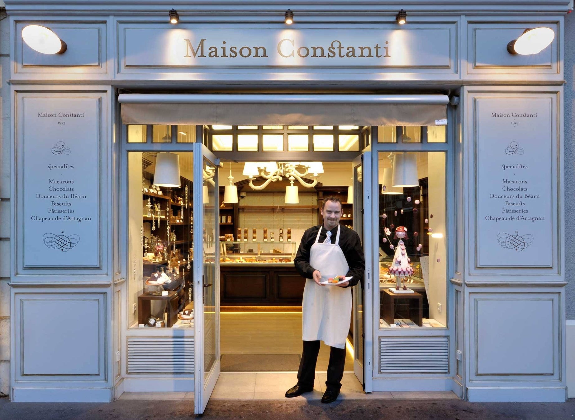 フランス南西部ベアルン地方に根さすメゾン・コンスタンティは1923年創業の家族経営のパティスリー。100年近くにわたり素材の持ち味を最大限に引き出す手仕事と丁寧な職人技を守り続けています。この伝統と遊び心が融合したベレー帽ショコラは選び抜かれたナッツやバター、チョコレートを用い、一粒一粒手作業で仕上げられた逸品です。メゾン・コンスタンティのチョコレートは、ベアルン地方の風土と100年にわたる職人の思いを伝える「味の芸術」です。