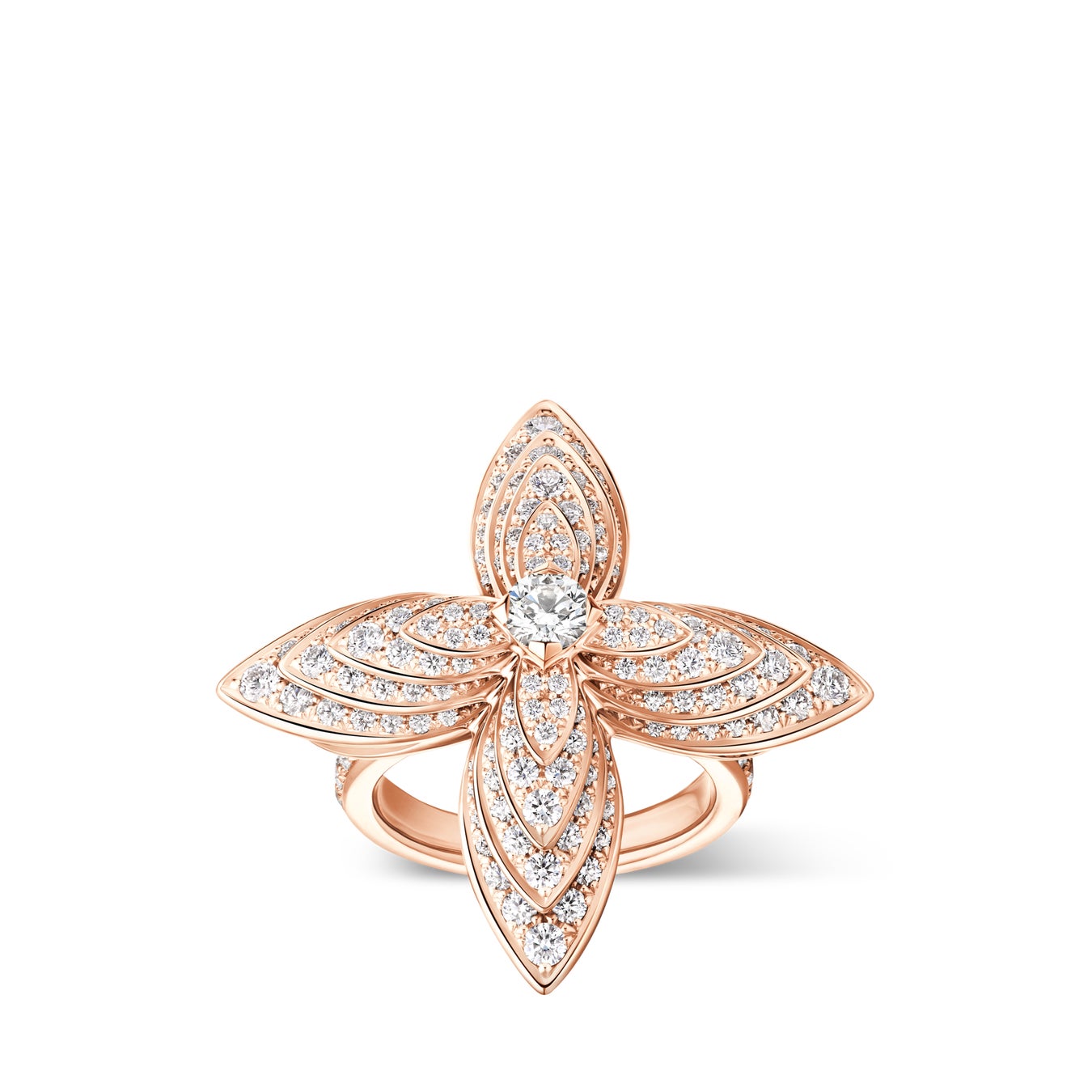 新たなエスプリが吹き込まれた「イディール ブロッサム」は、これまでにないハイジュエリーのクリエーションの新章を展開。どのジュエリーピースも、ルイ·ヴィトンのモノグラム·フラワーが時を経て変遷するストーリーを紡ぎ、新しいエッセンシャルとなるジュエリーの独創的な物語が、プレシャスなパウダーピンクのメタルやジェムストーンに刻まれます。