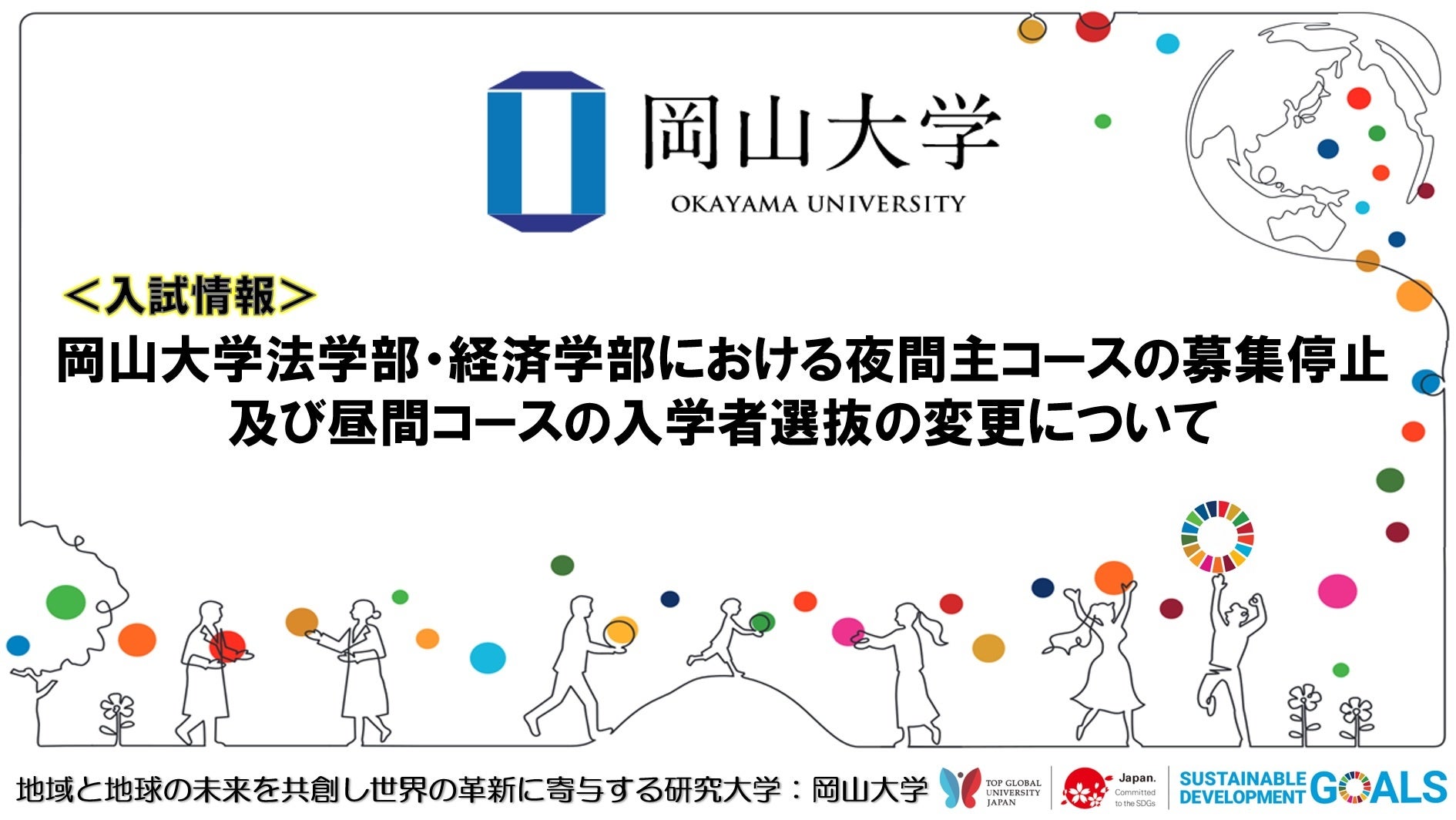 【岡山大学】岡山大学法学部・経済学部における夜間主コースの募集停止及び昼間コースの入学者選抜の変更について