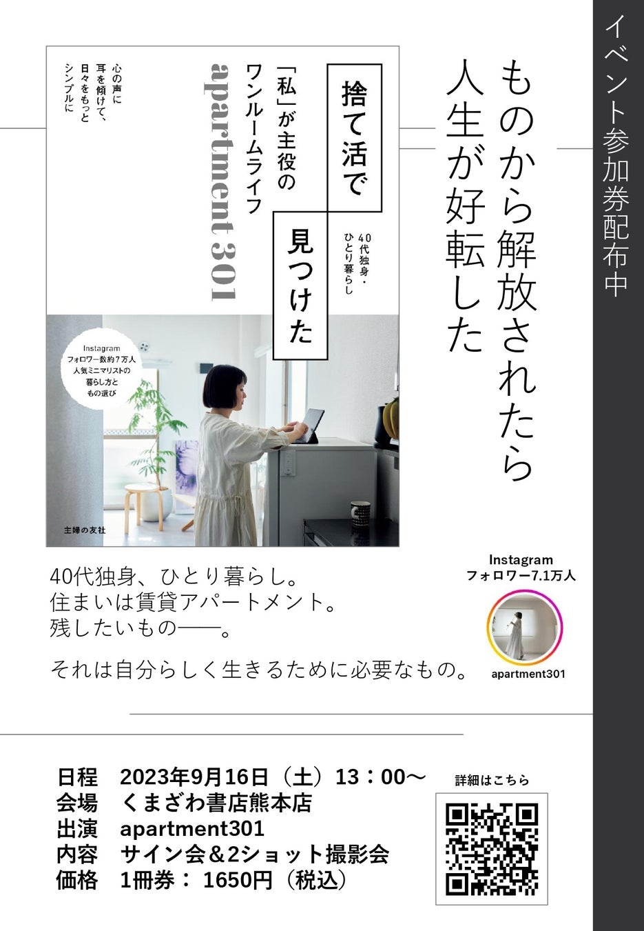 『捨て活で見つけた「私」が主役のワンルームライフ』2023年9月4日(月)主婦の友社より発売/熊本での出版記念イベントも開催