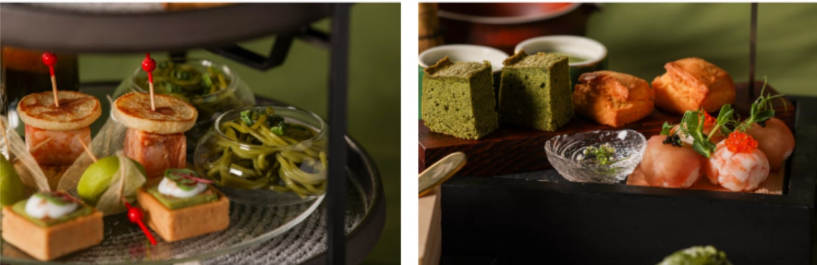 爽やかな新緑を思わせる上品な抹茶の味わいに癒されながら、優雅なひとときを過ごしていただけるよう“抹茶の時間”をテーマに提供いたします。ウェルカムドリンクは、味わいの異なる2種の抹茶。お客さま自身が抹茶を点てる「点茶体験」で、抹茶本来の上品な香りと奥深い味わいを感じていただけます。