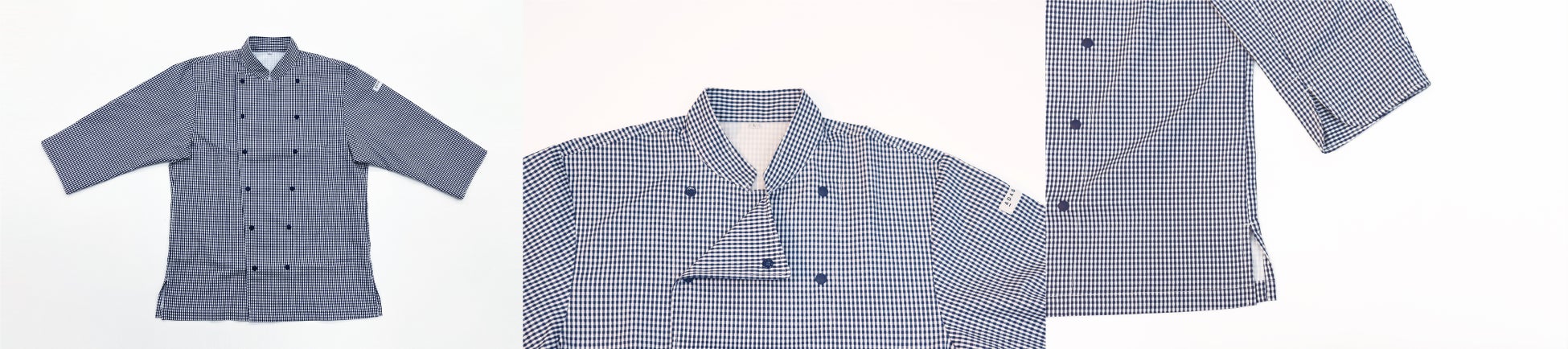 コックコートは、従来のコックコートに比べ「超軽量・吸汗速乾・イージーケア・防汚・ストレッチ」にこだわり、格段に機能性の高い素材を選定しました。仕事終わりに洗濯をしても、翌朝にはほとんど乾いている優れものです。