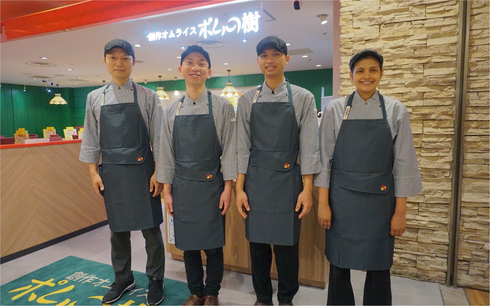 2025年に35周年を迎え更なるオムライス業界のリーディングカンパニーとして飛躍できるように、念願のアダストリア様と新ユニフォームデザインをコラボレーションさせていただきました。スタッフ全員が新ユニフォームで心新たに最高のクオリティーのオムライス、サービスを提供できる事を願っております。新しいユニフォームを着用したオムライスマイスターはじめスタッフ一同、皆様のお越しをお待ちしてます。