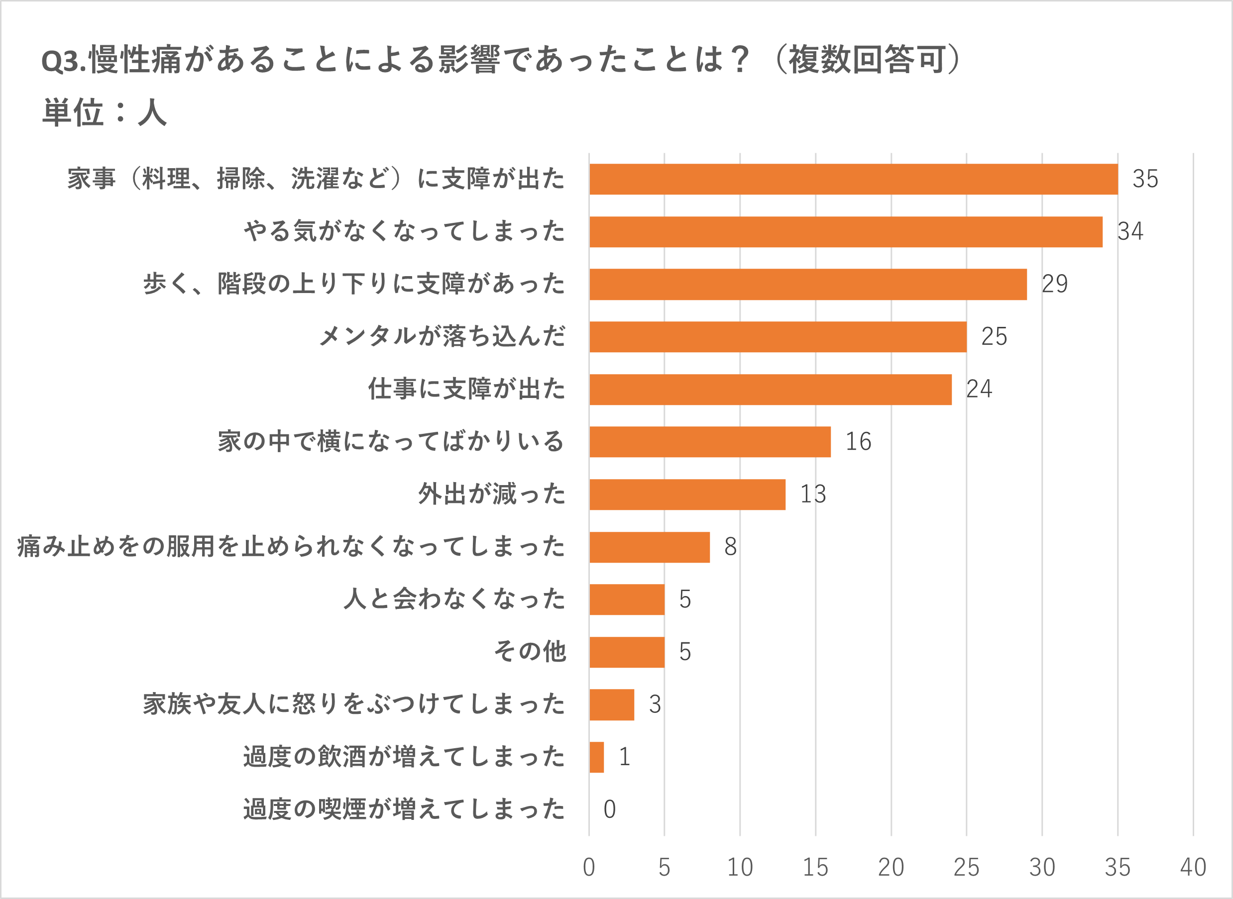 Q3.慢性痛があることによる影響があったことは?(複数回答可)