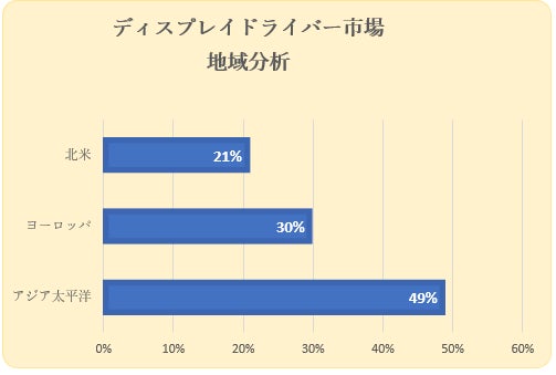 アジア太平洋地域は、予測期間中に最も急速に成長すると予想されます。 これは、LCD、LED、OLED 画面の最大の生産国です。中国、韓国、日本、台湾などのアジア諸国では、エレクトロニクス産業が活況を呈しています。これらの国は、世界の半導体市場で大きなシェアを占めています。さらに、これらの国の政府は、土地へのアクセスを許可し、融資に資金を提供し、工業化を促進することを支持しています。韓国は、予測期間中にディスプレイ ドライバー市場で最高の市場シェアを保持すると予想されます。韓国はOLEDディスプレイパネルの総生産量の95%以上を占めています。OLED技術の巨人であるSamsungとLGが生産拡大に巨額の投資を行っているため、韓国は予測期間中に規模の点で市場を支配すると予想されます。