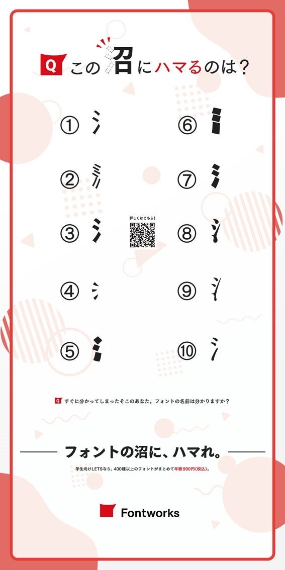 OJT作品の選考会で全員のプレゼンテーションを拝見しました。どのクリエイティブもコンセプトがしっかりしており、かつ、熱い思いが伝わってくる作品でした。日頃はあまり意識していないけど日々の生活の中で無くてはならない存在のフォントを「楽しく学ぶ」という観点で、学生向けLETSをアピールしている点が素晴らしい。また、「沼にハマる」というウィットに富んだフレーズの一文字「沼」をゲーム感覚で組み上げる仕掛けも楽しい。