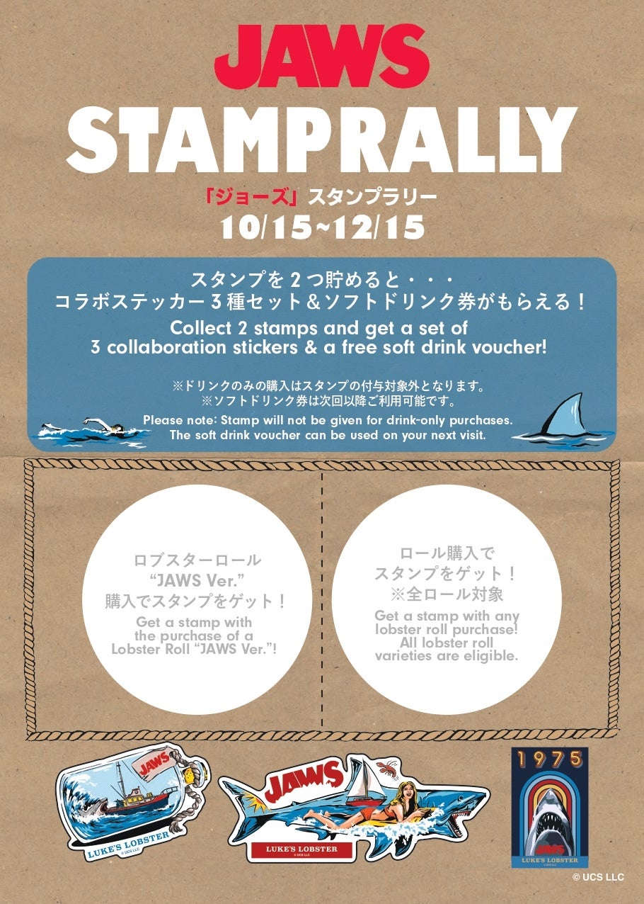 ルークスロブスターでは、映画『ジョーズ』とのコラボを記念したスタンプラリーを開催します。