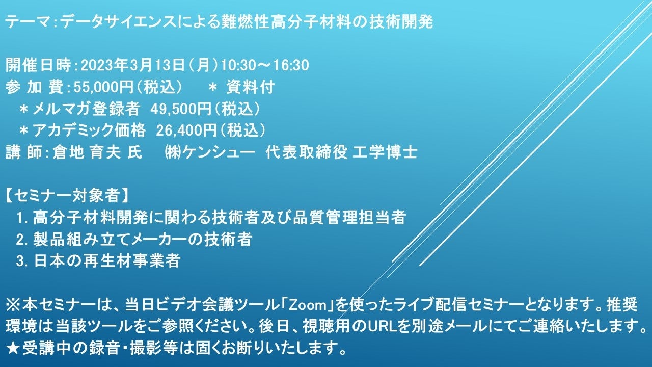 【ライブ配信セミナー】データサイエンスによる難燃性高分子材料の技術開発 3月13日(月)開催 主催:(株)シーエムシー・リサーチ