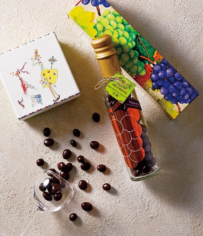 ボルドー産貴腐ワイン「ソーテルヌ」に浸したレーズンを、ビターチョコでコーティング。ぶどうの爽やかな酸味とチョコレートが奏でる優雅なハーモニーをどうぞ。