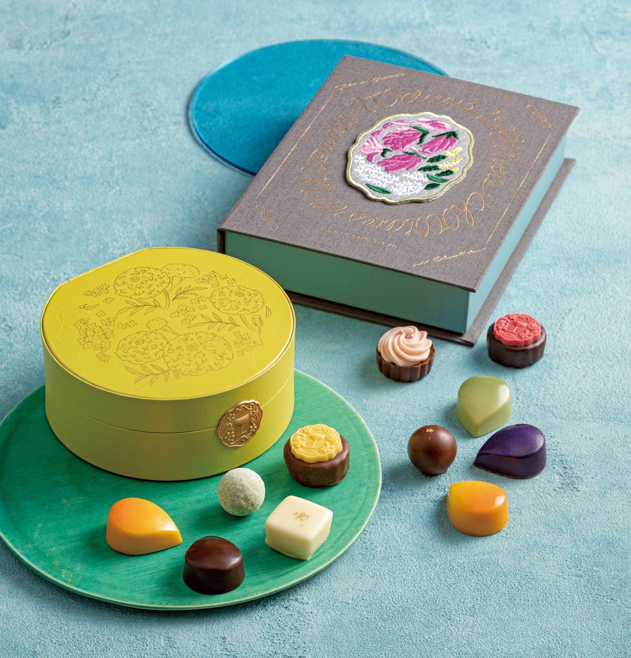 4つの情景を書き留めた、アルバムのようなチョコレートボックス。表紙には可憐なお花の刺しゅうを施しました。心地よい時間を思い描きながら、ひと粒ずつご堪能ください。