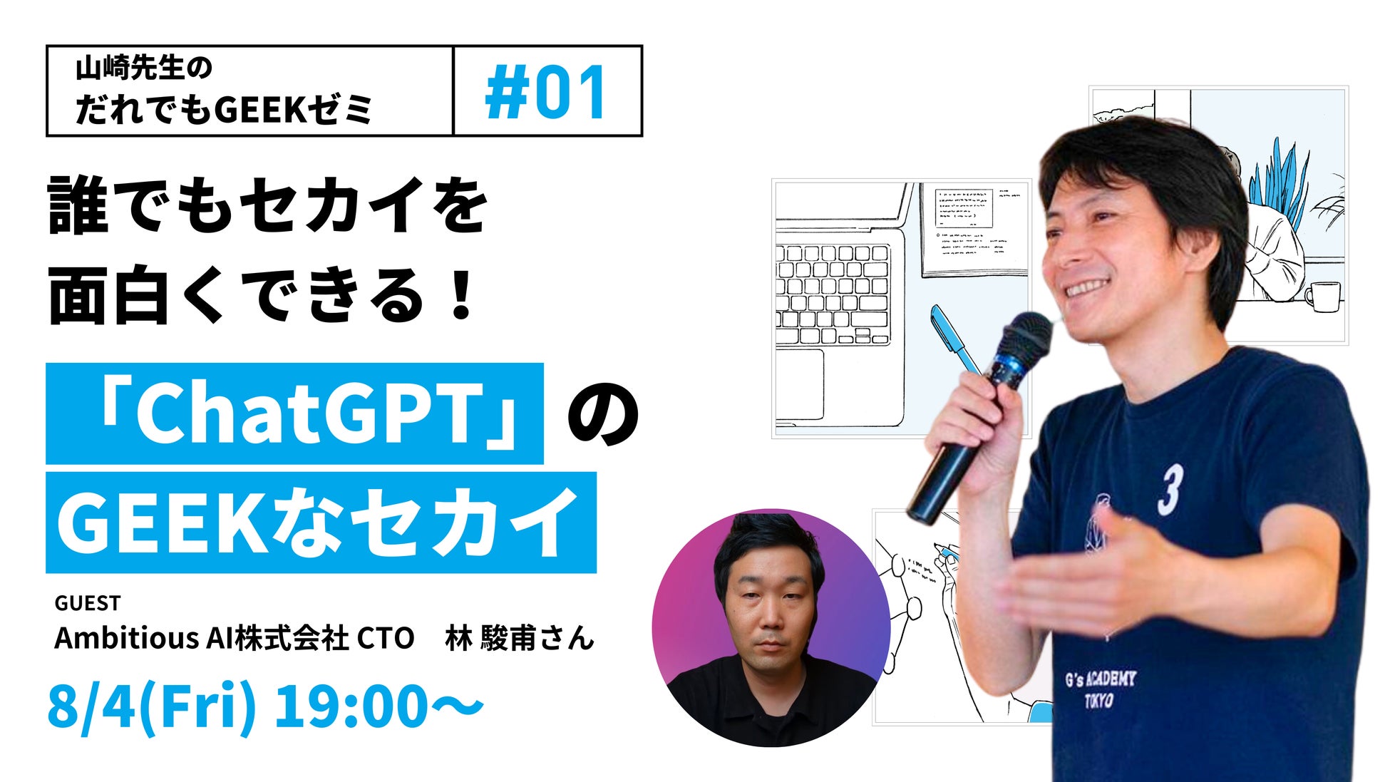 【イベント】山崎学校長と一緒にゲストを深堀り「だれでもGEEKゼミ」シリーズ始動|第1回テーマは「ChatGPTのGEEKなセカイ」|G's ACADEMY(ジーズアカデミー)